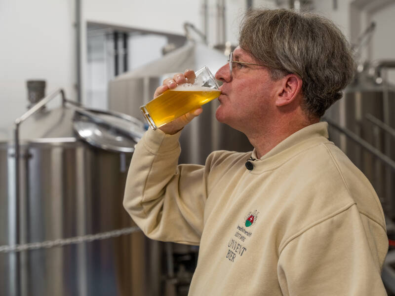 Unser Bierbraumeister Pfarrer Pirmin Mayer beim Kosten & Testen, ob schon abgefüllt werden kann. (Foto: Stift Göttweig)