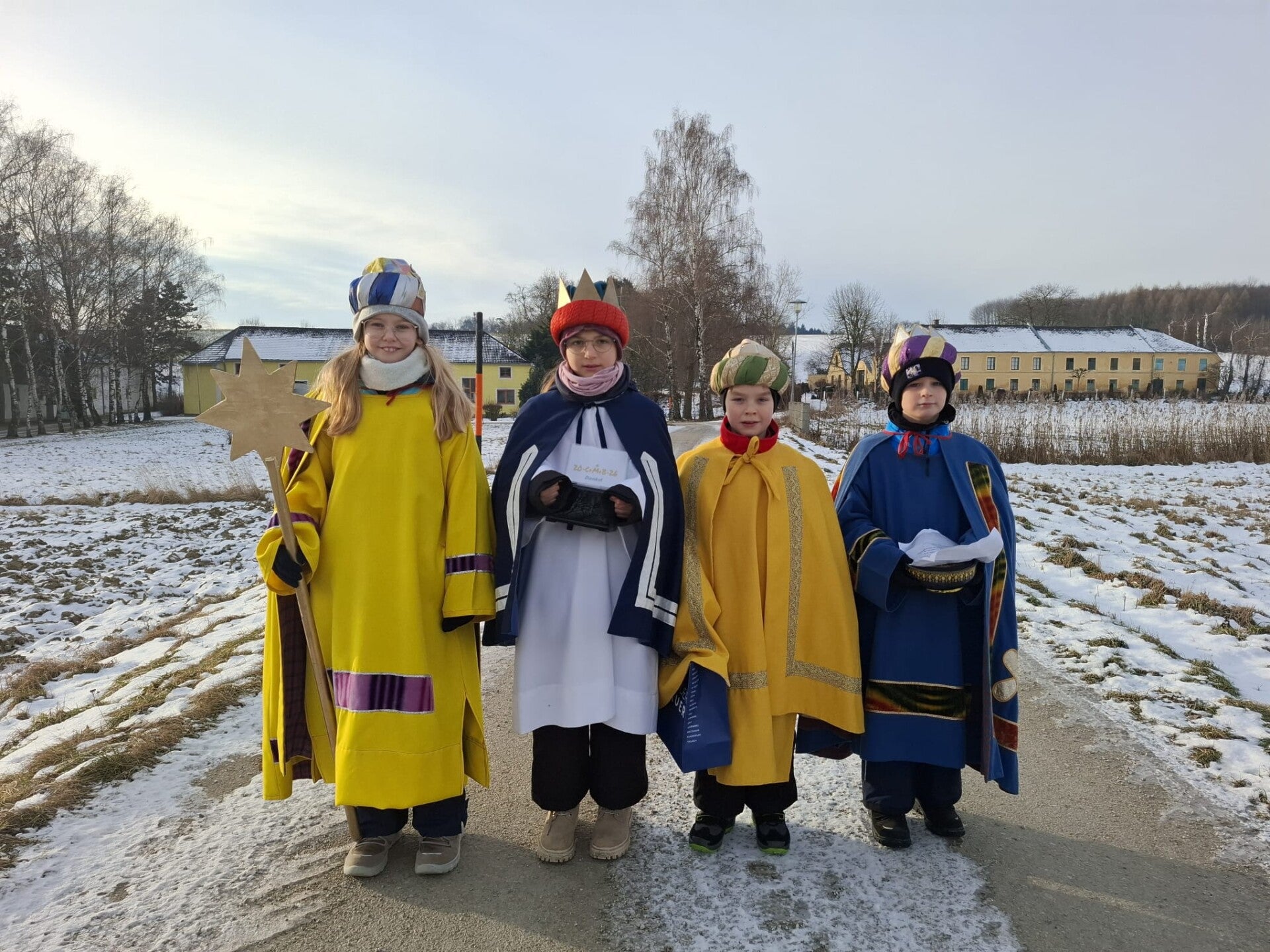Die Haindorfer Sternsinger in königlichen Gewändern unterwegs.